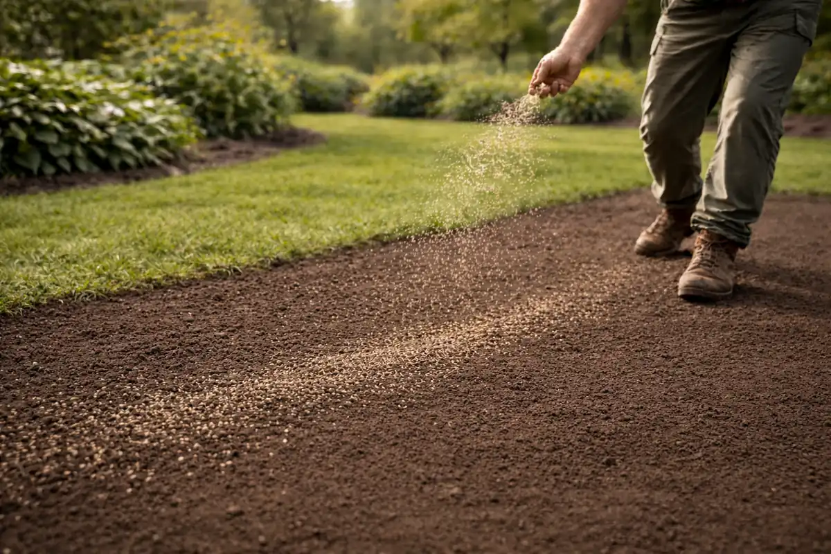 A hóra vetés egyik valós előnye meglepően egyszerű: a magot tökéletesen látod a fehér felületen. Ez azért számít, mert az egyenetlen kelés egyik leggyakoribb oka nem a mag minősége, hanem a szórás hibája. Hónál könnyebb észrevenni, hol lett túl sűrű, hol maradt ki folt, és azonnal korrigálható. Itt azonban jön a szakmai fordulat: a gyep nem attól lesz egyenletes, hogy a mag szépen lett kiszórva, hanem attól, hogy a fűmag több napon át egyenletes környezetben marad és valódi kapcsolatba kerül a talajjal. Hóra vetésnél ez a leggyengébb pont, mert a mag még nem talajban van, hanem a felszínen, ahol a körülmények sokkal kiszámíthatatlanabbak.