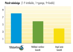 A Water Saver keverék lényege, hogy jobban bírja a meleget és a vízhiányt, így kevésbé látványosan romlik a gyep állapota akkor sem, ha nem tudsz folyamatosan öntözni. :contentReference[oaicite:0]{index=0}