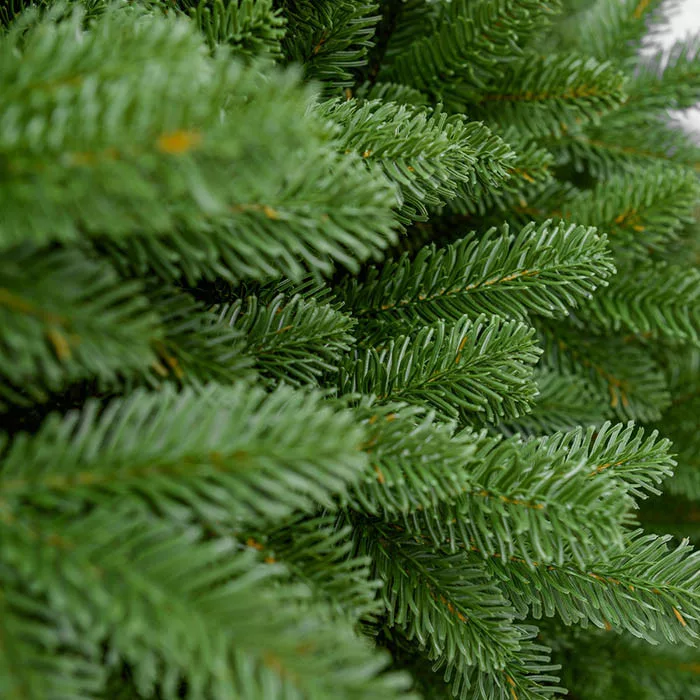 A 3D műfenyő tűlevelei formásak, a végeken világosabbak, friss hajtás hatást keltve, de szabálytalan sziluettje miatt élethű igazán. Ágai magasabban kezdődnek, ezért kényelmesen alárakhatók az ajándékok. Pántos ágai a törzsről esernyőszerűen hathatóak ki.