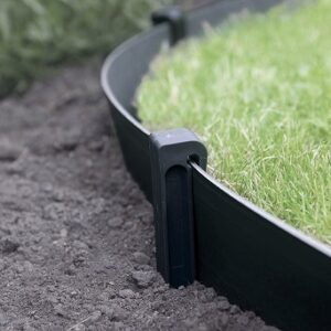 Tartós és rugalmas ágyásszegély, amely dekoratív keretet ad virág- és növényágyásoknak.