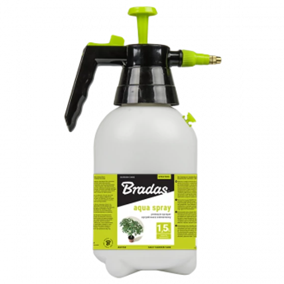 Könnyen használható, modern, stílusos kialakítású 1,5 literes „AQUA SPRAY” kézi permetező. Ideális a kertekben, teraszokon és erkélyeken lévő növények gyengéd permetezésére.